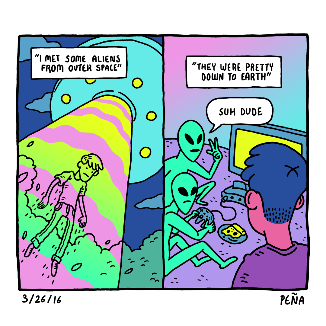 Peña Comix is a collection of one-off stories that I've posted online over the years. Printed in 2017, it has 14 pages of the most relatable content on this side of the web. Issue 2 currently in progress.